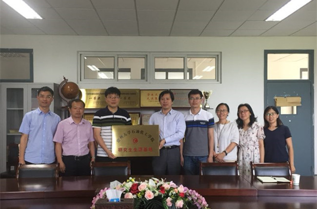 6月15日,马江权一行前往南京晓庄学院环境科学学院。南京晓庄学院环境科学学院院长刘光祥致欢迎辞,马江权介绍了学院研究生科研、人才培养以及研究生生源基地设立的意义。马江权、刘光祥代表双方签署了常州大学石油化工学院研究生生源基地建设协议并挂牌。