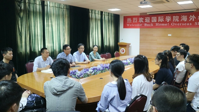 在学生交流会上,海外返校学生结合国外学习、生活要求谈了自己的体会,给即将出国的学弟学妹们提出了很多有帮助的建议,一是选课要合理安排、量力而为,二是课堂上要努力适应不同教授的授课方式,同时记好笔记,积极参与小组讨论,主动给教授发邮件,主动参加Tutorial,三是课后要强化自主学习能力,学会学习。