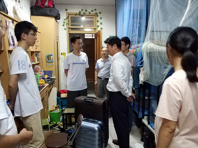 暖心关爱送祝福,深情问候话离别,6月21日,石油化工学院院长陈智栋、院党委书记吴荷平、副院长罗士平、院党委副书记宣慧、毕业班辅导员等深入毕业生宿舍走访看望毕业生。
