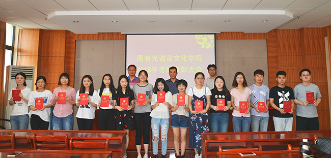 6月20日,周有光语言文化学院在逸夫楼516会议室召开2018届毕业生考研表彰大会,院领导、2018届考上国内研究生的同学,2019届准备报考的同学参加了表彰大会,会议由院党委副书记薛勇主持。