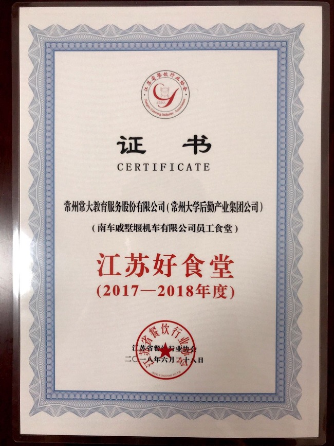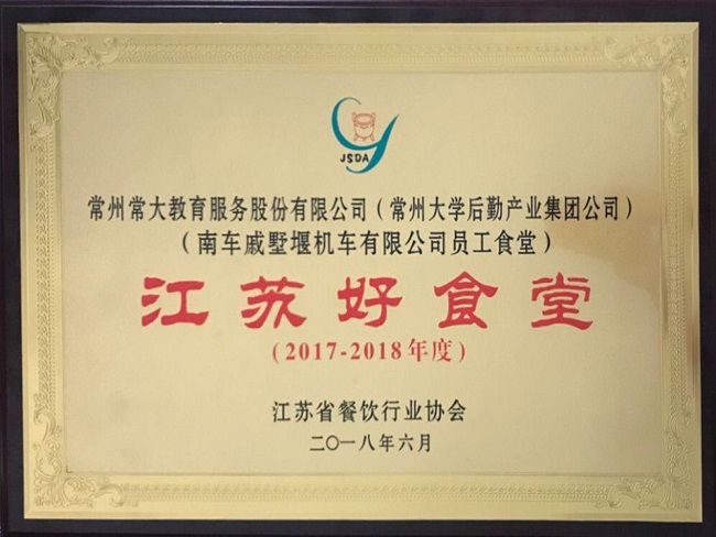 会议对2017年度江苏团餐功勋人物、2017年度江苏团餐领域代表品牌,2017-2018江苏好食堂进行评选表彰。我校后勤公司常州分公司戚机厂食堂荣获“2017-2018江苏好食堂”称号。
