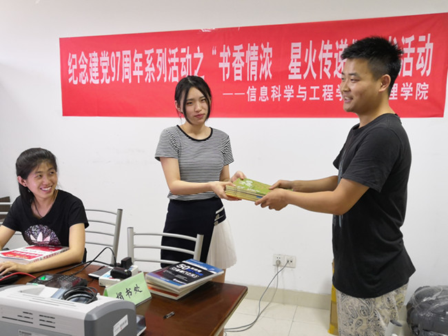 为纪念建党97周年,弘扬大学生感恩精神,近日,信息数理学院举办主题为“书香情浓,星火传递”的毕业季捐书活动。