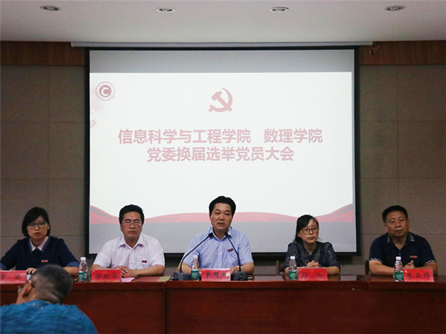 院党委书记徐明华代表上一届党委作了《不忘初心 继往开来 不断开拓新局面》的工作报告,报告从党建工作、学科专业建设、教学科研、师资队伍与人才培养、实验室建设、学生工作等方面全面回顾了三年来学院党委工作取得的成绩,分析了存在的不足,明确了今后一段时期学院的工作目标和主要任务。上一届党委委员石澄贤作了《信息科学与工程学院 数理学院党委党费收缴、使用和管理报告》,详细汇报了学院三年来党费的收缴、使用和管理情况。大会审议并通过了以上两个报告。