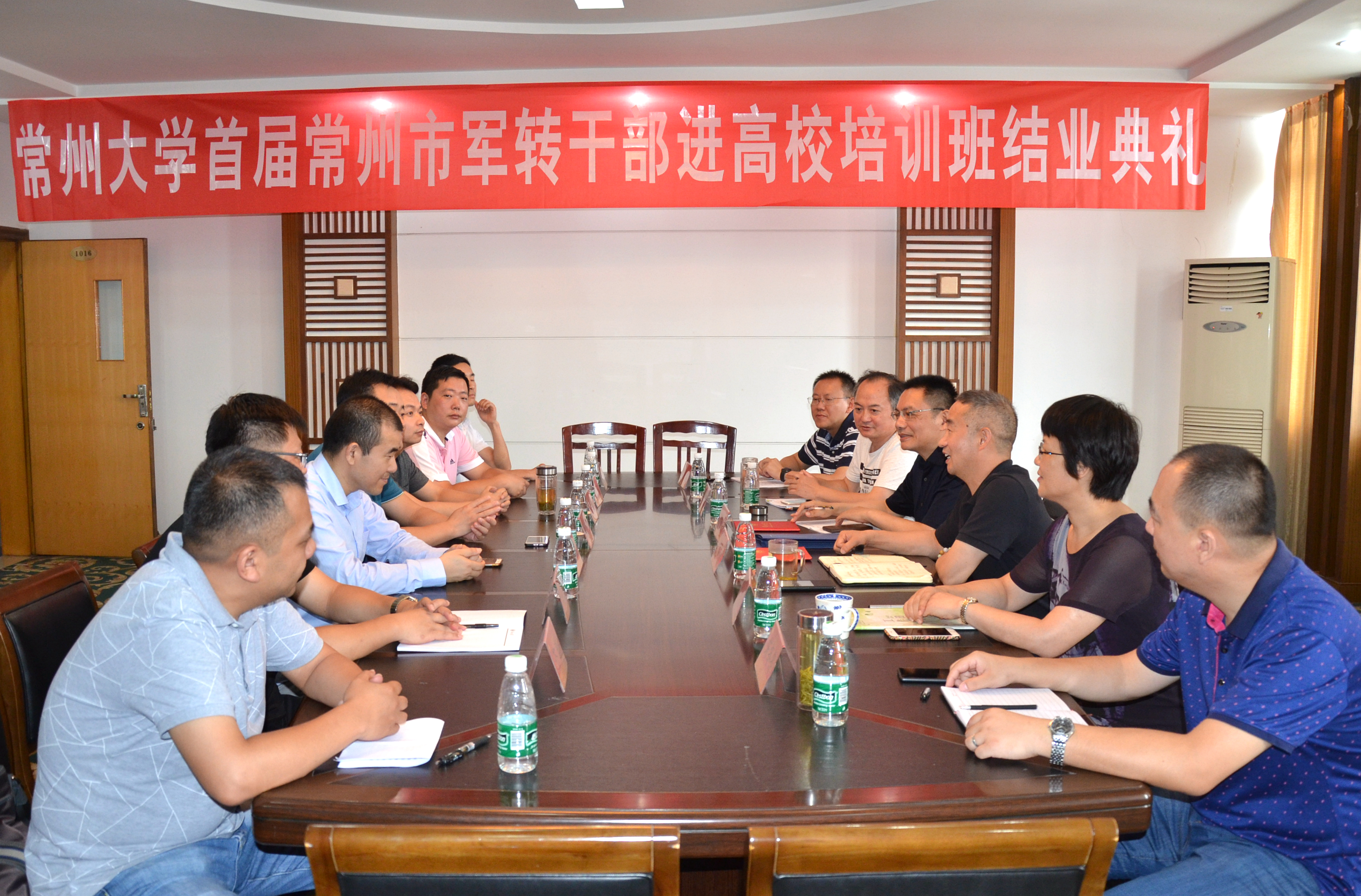 7月11日上午,常州大学首届常州市军转干部进高校专项培训班结业典礼在继续教育学院会议室举行。常州市军转办主任尹志平,常州市军转干部安置处处长张学智,继续教育学院院长荆谷平、副院长阮霞、培训办公室相关人员以及首届培训班全体学员参加了结业典礼。典礼由阮霞主持。