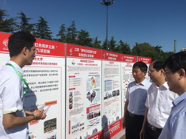 赛前,与会代表参加了“青年红色筑梦之旅”盐城对接活动启动仪式,参观了新四军纪念馆以及红色文化特色乡镇等。在启动仪式后的“青年红色筑梦之旅”项目巡展环节,江苏省教育厅副厅长王成斌等领导亲临我校展位,认真听取学生的创业项目介绍,并对我校大学生创新创业工作成果予以肯定。