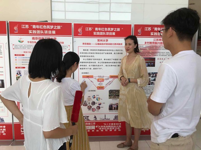 我校教务处与校团委、学生处、创新创业学院等部门通力合作,经过全校广泛动员和积极参与,通过校内选拔赛遴选出“贵在植染—以植染技术革命助力贵州脱贫致富”创业项目参加今年的“互联网+”江苏省赛“青年红色筑梦之旅”赛道。在历时两天的决赛中,经项目计划书评审、项目路演及答辩等环节评审,最终产生一等奖10项,二等奖10项,三等奖20项,乡村振兴奖、精准扶贫奖各1项。我校参赛项目在决赛路演答辩环节表现出色,获得评委一致认可,取得了决赛第三名的好成绩。同时,参赛团队还获得了“青年红色筑梦之旅”红色经典诵读会入围作品奖。赛后,盐城电视台对我校参赛选手进行了现场采访。