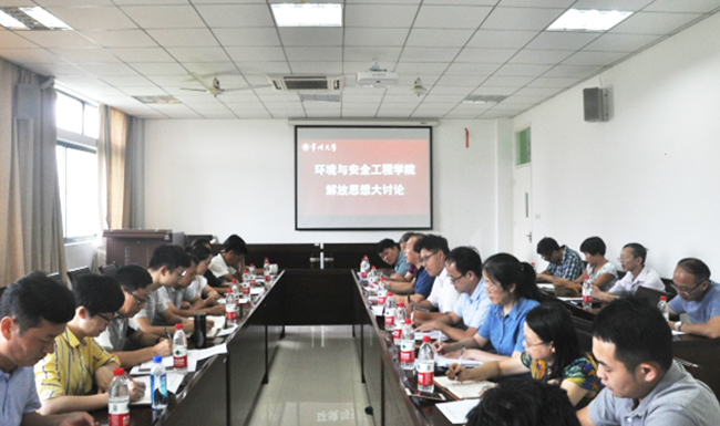9月5日下午,环境与安全工程学院开展解放思想大讨论活动,学院党委班子、党支部书记、专业负责人、学科带头人、全体正高级教师、学院办公室主任、实验中心主任、学工办主任、团委书记参加会议,院党委书记薛荣主持会议。