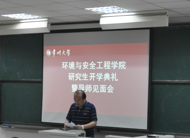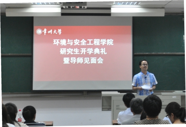 9月10日下午,环境学院在东区明行楼112教室举行2018级研究生开学典礼。院党委书记薛荣、院长李忠玉、院党委副书记吕琳华、副院长王明新、各学科负责人、辅导员及全体2018级研究生新生出席了开学典礼。典礼由王明新主持。