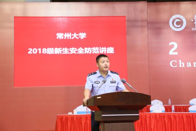 为加强新生安全防范意识,提高自我保护能力,9月12日下午,常州市武进区科教城派出所何之源警官在体育馆为全体2018级新生作了安全教育讲座,讲座由后勤管理党总支书记秦义主持。