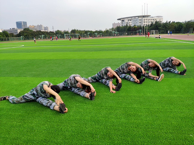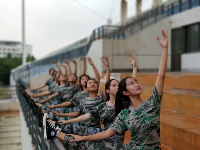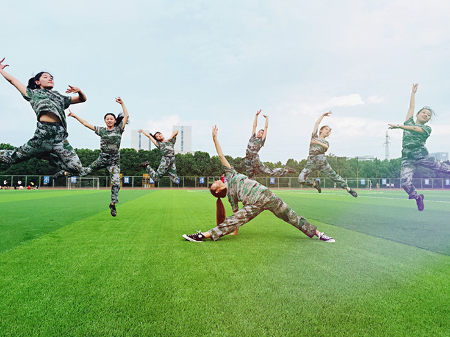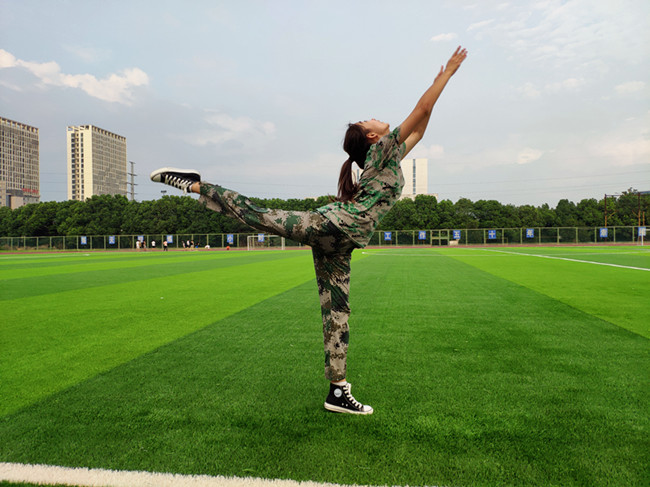大秀一字马、倒踢紫金冠等高难度动作,出现在军训场上,引得在场军训同学围观点赞、阵阵欢呼。她们用轻灵的身姿,微笑的脸庞,舞出青春的旋律,充分展现大学生的青春与活力,并用这种独特的方式来纪念军训生活,留下青春美好回忆。