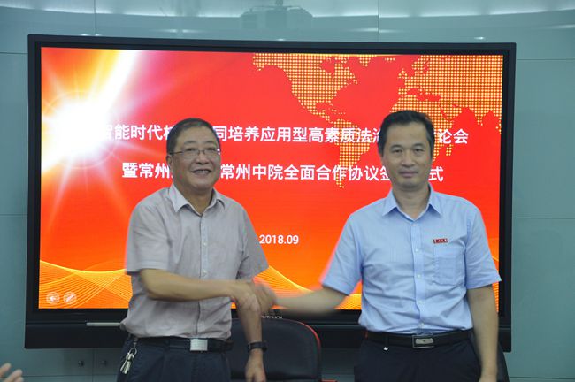9月20日下午,“智能时代校院协同培养应用型高素质法治人才”研讨会暨常州大学与常州市中级人民法院全面合作协议签约仪式在常州大学第一会议室举行,常州大学副校长徐树法、常州中院副院长裴阳出席会议并签约,常州中院职能处室、武进区、钟楼区、新北区法院等部门领导及史良法学院相关负责人、教师共同参加了会议。会议由史良法学院副院长张建主持。