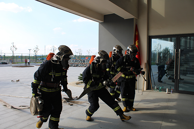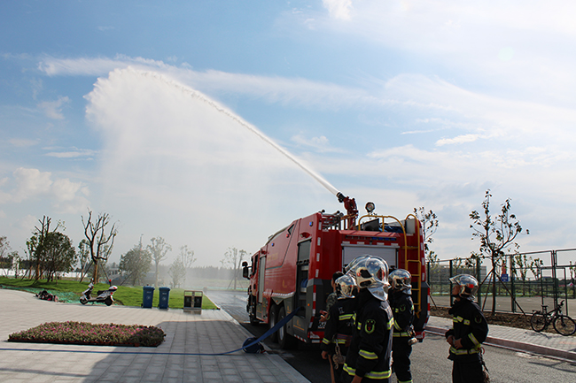 下午三点整,演练正式开始。消防员接警后迅速到达火情现场,并立即展开灭火演练。演练中,消防员为全体新生实地演练了消防水带连接、高炮喷水灭火以及灭火器的使用方法等,通过案例详细解说了防火、逃生及其注意事项等。