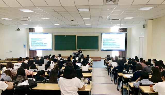9月26日下午,南京大学曹建新教授在西太湖校区1阶为周有光语言文化学院师生作 “打开口译的心锁”讲座。学院从事翻译教学的教师及英语2015级、商务英语2016级学生共150余人到场聆听。