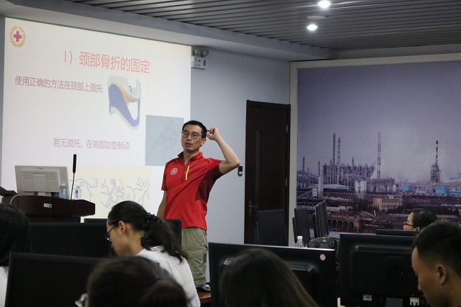 军训内容涵盖队列训练、体能训练等,参训辅导员斗志昂扬、认真刻苦,圆满完成训练任务,取得良好的训练成效。期间,为加强辅导员对应急救援知识的学习,帮助辅导员掌握基本的现场急救技能,并进一步提升辅导员的应急处置能力,学校邀请了红十字常州龙城救援队讲师顾云浩作安全急救专业知识培训。他结合社会和高校中常见的突发安全事故案例,通过知识讲授、演练结合、现场互动的方式,向在场人员传授了心肺复苏、海姆立克、包扎、止血及其它常见疾病突发处理等急救知识。(通讯员 陈启迪)