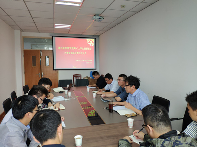 10月9日下午,机械工程学院 城市轨道交通学院“互联网+”大学生创新创业总决赛出征动员在乐行楼610会议室举行。院长张跃、院党委书记柳铭、院党委副书记葛涛、参赛项目指导老师张琳及全体参赛成员参加。会议由葛涛主持。