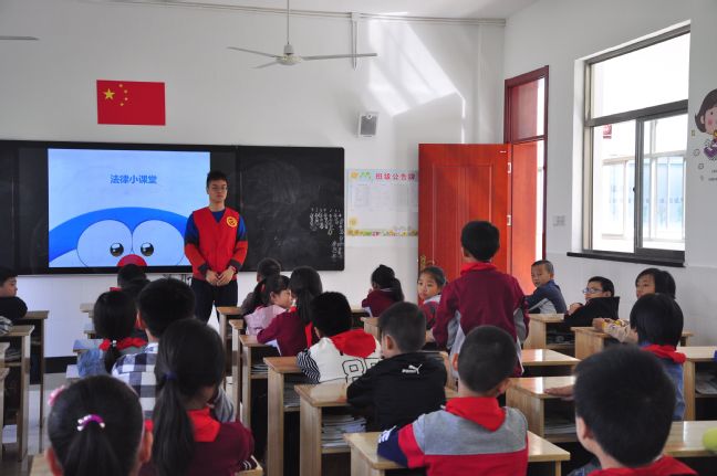下午参加活动的八名党员研究生被分配到八个班级,通过一系列的生活小案例,将深奥的法律法规变成一个又一个有趣而生动的故事,让小学生们在精彩的问答环节中不断增长自己的法治常识,了解到生活中各类行为的法律后果,并在课堂上与小同学们进行了热烈的互动。