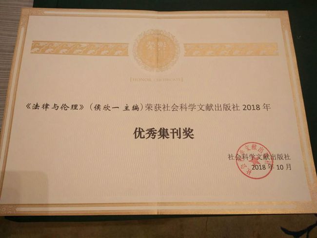 10月20-22日,史良法学院主办的学术集刊《法律与伦理》的执行主编夏纪森教授参加了在湖北武汉举办的社会科学文献出版社第七届人文社会科学集刊年会,《法律与伦理》集刊在社会科学文献出版社出版的近三百种集刊评选中以问题意识明晰、发表论文规范、特色栏目设置等优势荣获社会科学文献出版社2018年优秀集刊奖。