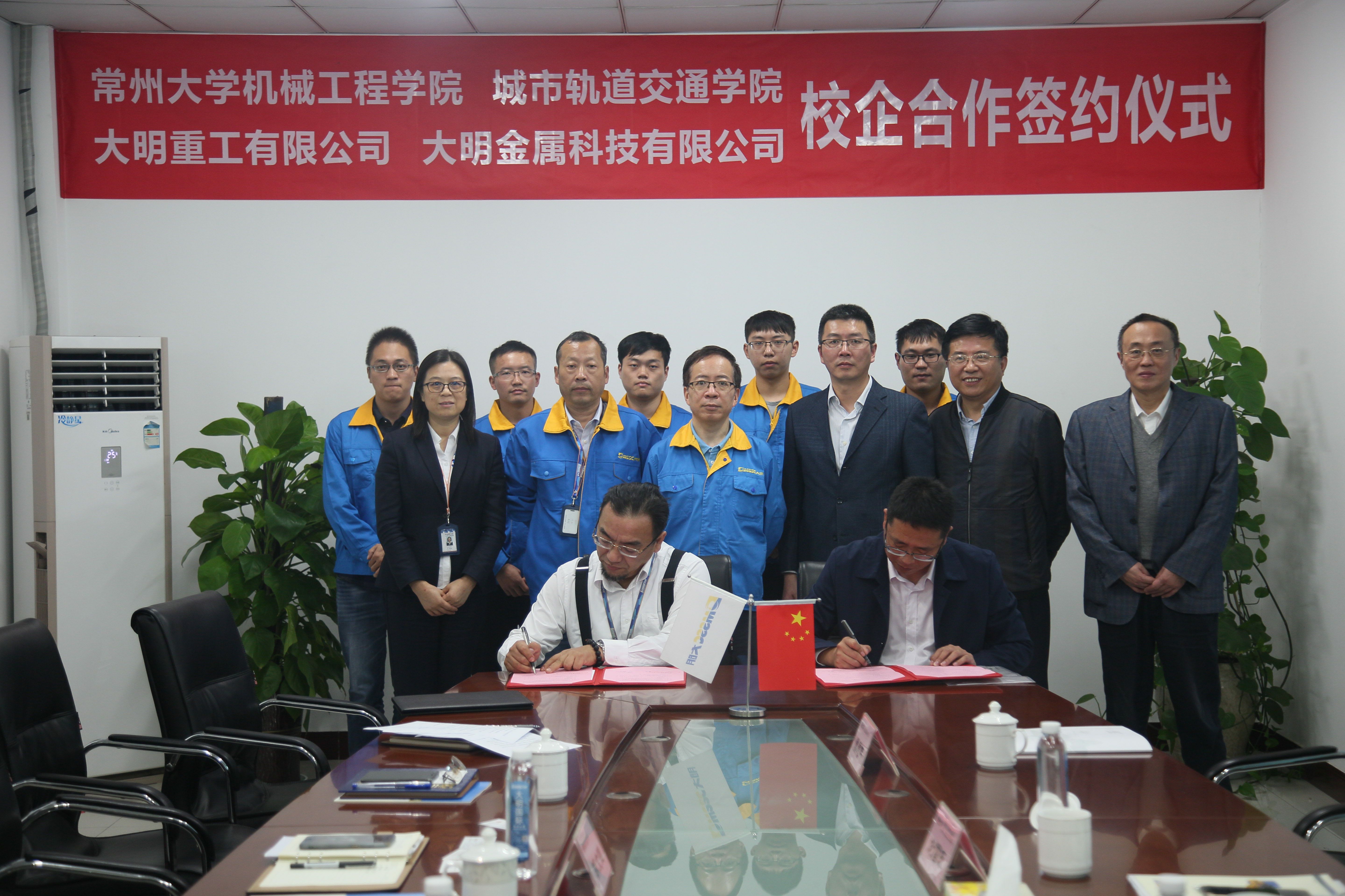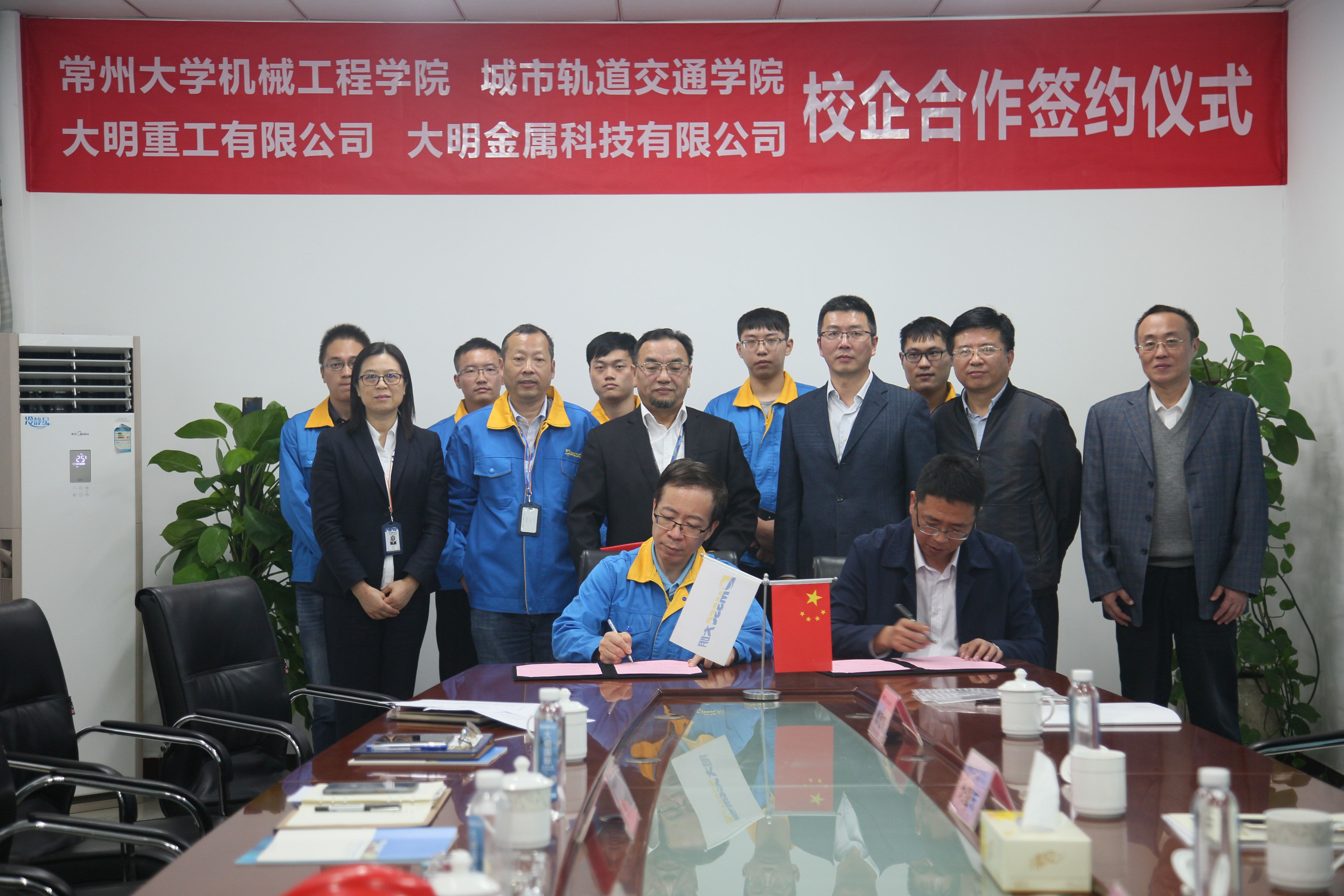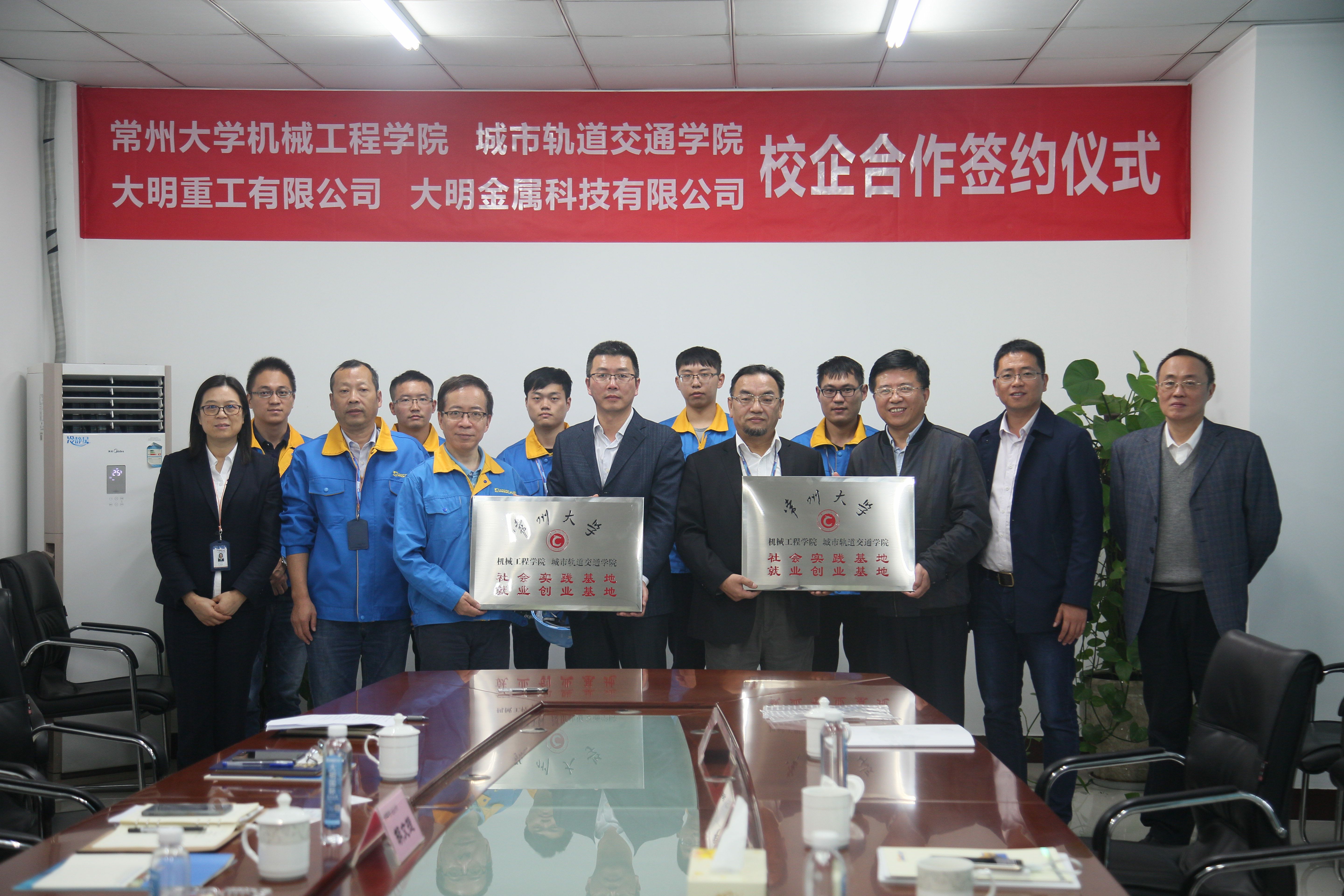 随后,葛涛代表学院和大明重工有限公司、大明金属科技有限公司签署了大学生就业创业基地和社会实践基地共建协议,柳铭、刘雪东、曹黎明、胡文捷为基地共建揭牌。学院将与公司就人才培养、实习基地建设、科研合作等事宜进行全面合作。