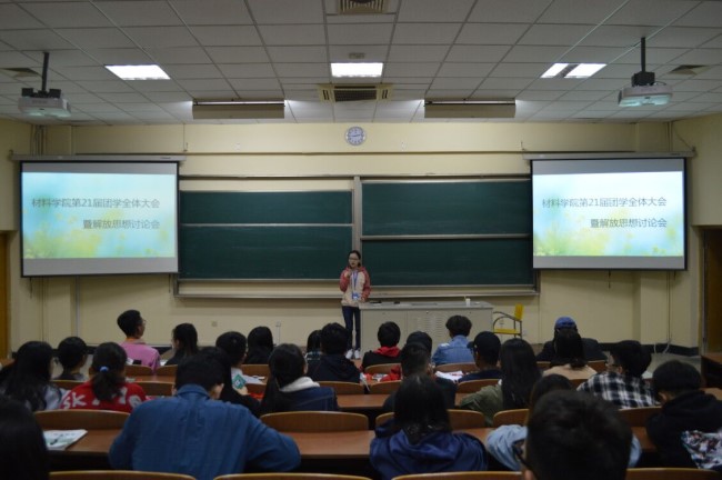 10月29日下午,材料学院在W2举行了第21届团学第一次全体大会暨解放思想讨论会,院团委书记蔡震宇和全体团学成员参加大会。