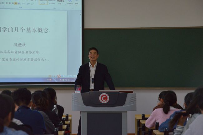 10月30号,瞿秋白政府管理学院邀请常州大学特聘教授、江苏省记者协会名誉主席、中共江苏省委宣传部原常务副部长周世康作新闻学专题讲座。公共事业管理专业教师王彬、金国以及公共事业管理学生参加此次讲座。讲座由副院长马继迁主持。