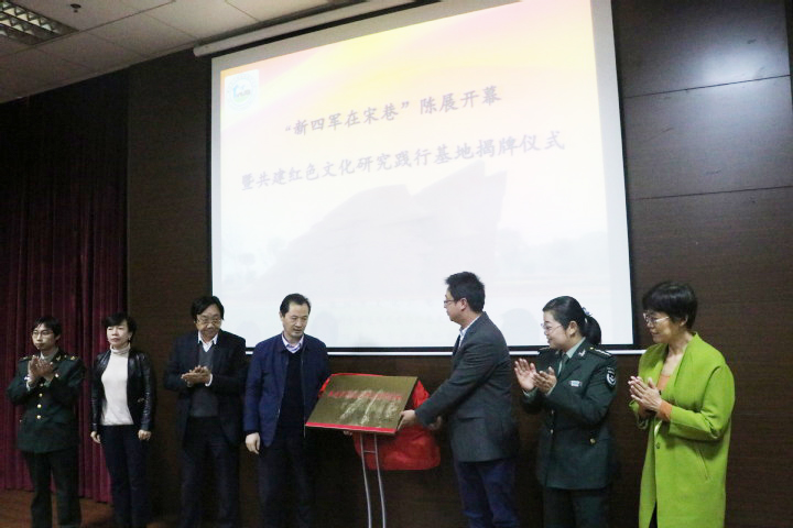 11月7日是新四军江南指挥部成立79周年纪念日,“新四军在宋巷”陈展开幕暨共建红色文化研究践行基地揭牌仪式在溧阳新四军江南指挥部旧址纪念馆举行。常州大学党委常委、副校长徐树法,常州大学近现代史与红色文化研究院院长、常州市红色文化宣传教育阵地联盟理事长朱成山,常州大学马克思主义学院副院长刘晓华,溧阳市文广体局副局长晋松,溧阳新四军江南指挥部旧址纪念馆馆长张燕,常州市红色文化宣传教育阵地联盟秘书长、常州大学近现代史与红色文化研究院副院长张菊香等出席仪式。