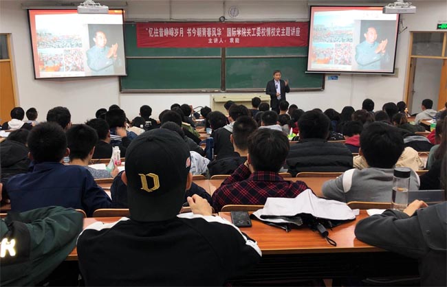为帮助18级新生熟悉常州大学发展历程,增强对学校的归属感、自豪感,11月15日晚,国际学院关工委邀请离退休工作处正处级调研员袁能老师在W11阶举办校情校史专题讲座。
