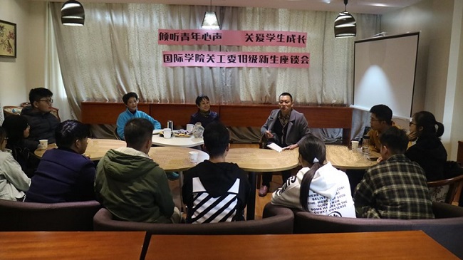 11月22日下午,国际学院在明行楼521举办“倾听青年心声 关爱学生成长”2018级新生交流座谈会,院关工委叶菁荫老师与学院教学督导王秋玲老师出席座谈会。