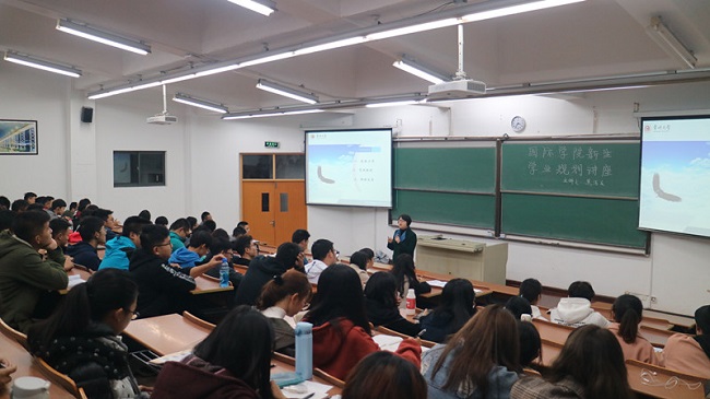 11月21日,国际学院为18级新生举办“规划未来,赢在大学”学业规划讲座,邀请学生处副处长焦洁庆主讲。