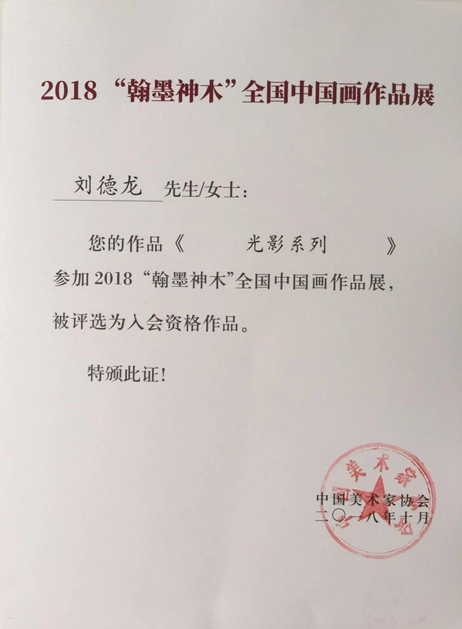 近日,庆祝改革开放四十周年暨2018“翰墨神木”全国中国画作品展开幕式在陕西省神木市举行。常州大学艺术学院刘德龙老师的作品《光影系列》被评选为入会资格作品,也是江苏省获此殊荣的两件作品之一。
