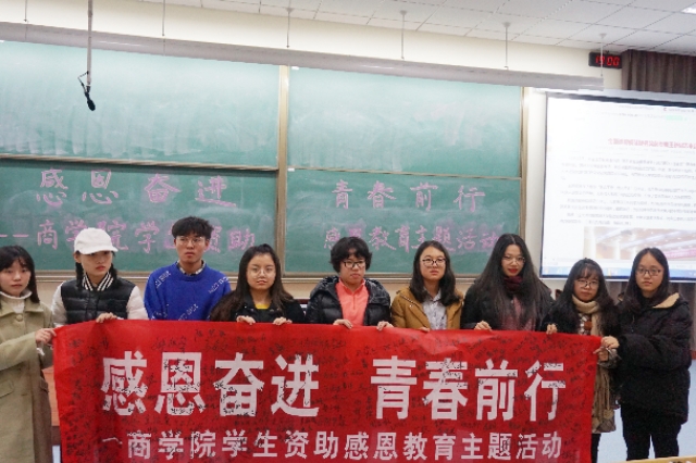 为培养广大学生常怀感恩之心,常为感恩之行,12月5日晚,商学院在X2阶开展了以“感恩奋进 青春前行”为主题的学生资助感恩教育活动。各专业学生踊跃参与,教育活动效果良好。