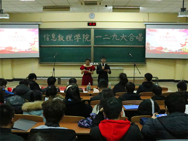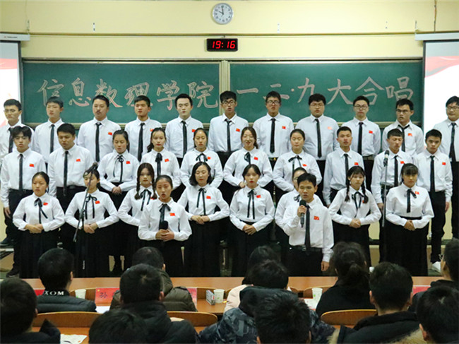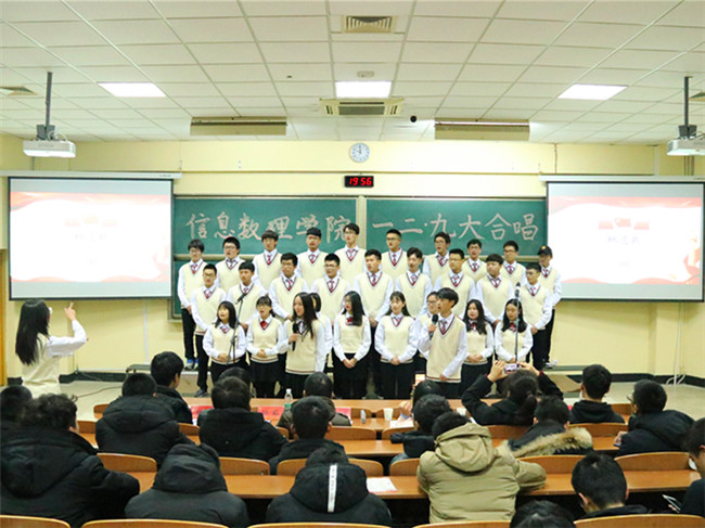 为纪念“一二·九”爱国运动,激发大学生的爱国热情,增强班级凝聚力,12月7日晚,信息数理学院团委在W4阶举行了纪念“一二•九”运动合唱比赛。院党委副书记常愉、学工办全体老师出席活动并担任评委,院团委学生会学生骨干及2018级全体新生参加了此次活动。