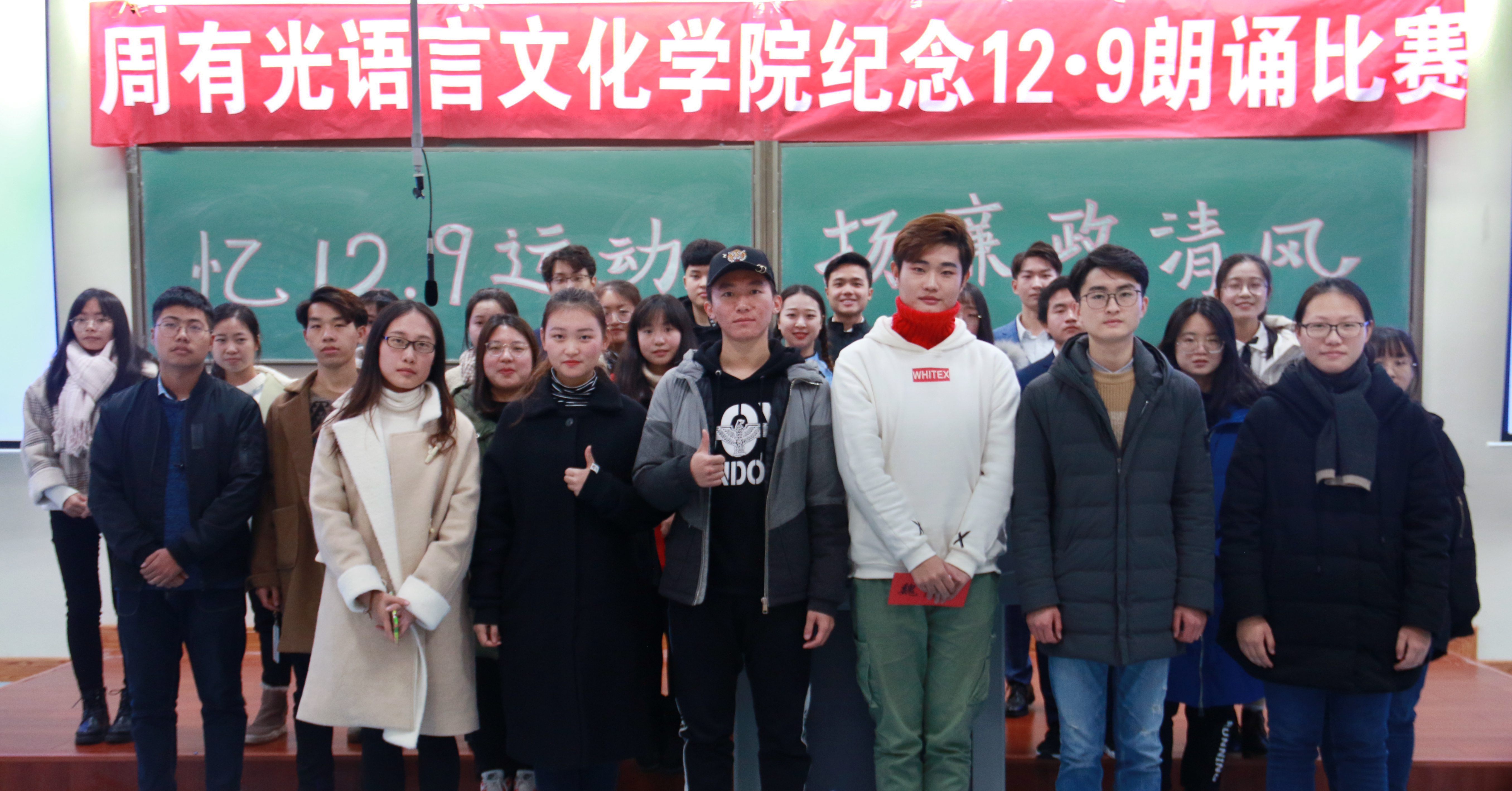 为缅怀历史,弘扬斗志,12月9日晚,由常州大学纪委办和周有光语言文化学院团委联合主办的“忆12·9运动,扬廉政清风”朗诵比赛在常州大学西太湖校区顺利举行,学院全体学生参与了本次比赛。