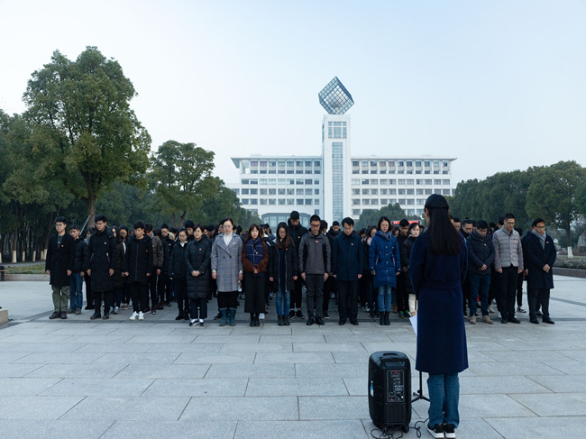 在第五个国家公祭日到来之际,12月13日清晨,校团委纪念 “国家公祭日”主题升旗仪式在武进校区西区南广场举行。校团委全体人员、各学院团委书记、校青年学习社社员与校青年马克思主义学院学员以及自发前来的师生200余人一同参加了主题升旗仪式。