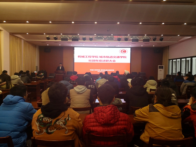 12月19日,机械工程学院 城市轨道交通学院社团年度述职交流会在乐行楼二楼报告厅举行,学院全体辅导员及各大社团骨干成员参加交流会。