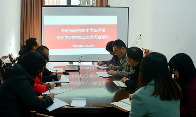 12月24日上午,周有光语言文化学院党委组织学习传达中国共产党常州大学第二次代表大会精神,院党委班子,支部书记,全体学工人员参加会议。学习会由院党委书记王金刚主持。
