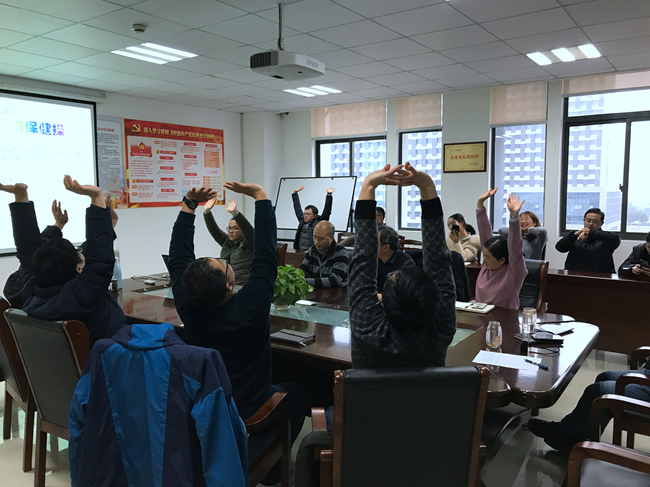 赵国辉从医理分析了引起颈椎病的原因,包括长时间伏案工作、使用手机、枕头高度不适等,强调关节错位是颈腰痛最常见的因素。此外,赵国辉还提及了如何选用枕头,以及如何预防脊椎病等。讲座过程中列举了相关的医学临床中的经典案例,通过图文等形式多方面多层次进行了分析,并现场教大家一套简易脊椎实用保健操和穴位按摩法,现场的老师边学边做,感受保健操和穴位按摩带来的功效。(通讯员 王卫卿)