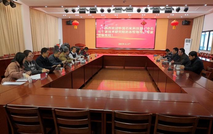 近日,中国石化科技部化工处处长方志平、中石化宁波技术研究院院长郭文元一行8人来校,检查指导能源化工装备研究院承担的2项中国石化重点研发计划项目的进展情况,并就2019年联合研发项目进行对接交流。能源化工装备研究院院长刘雪东、机械工程学院党委书记柳铭及研究院科研骨干参加交流对接活动。活动期间,常州大学副校长苏旭平、产学研合作处处长彭明国等会见了与会来宾。