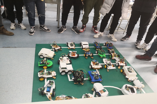 此次成果展示的项目是“智能小车沿轨迹行驶”,经过一个学期的学习,同学们通过机械画图、电子制版、程序编程等完成了智能小车的制作。此次项目成果验收由五位老师担任评委,老师们从速度、行驶状况、外观构造三方面对每位同学的智能小车进行评分。在成果展示过程中,同学们积极调试自己的小车,遇到突发状况能够进行迅速的调整和处理,最终顺利完成任务。(通讯员/席帅)