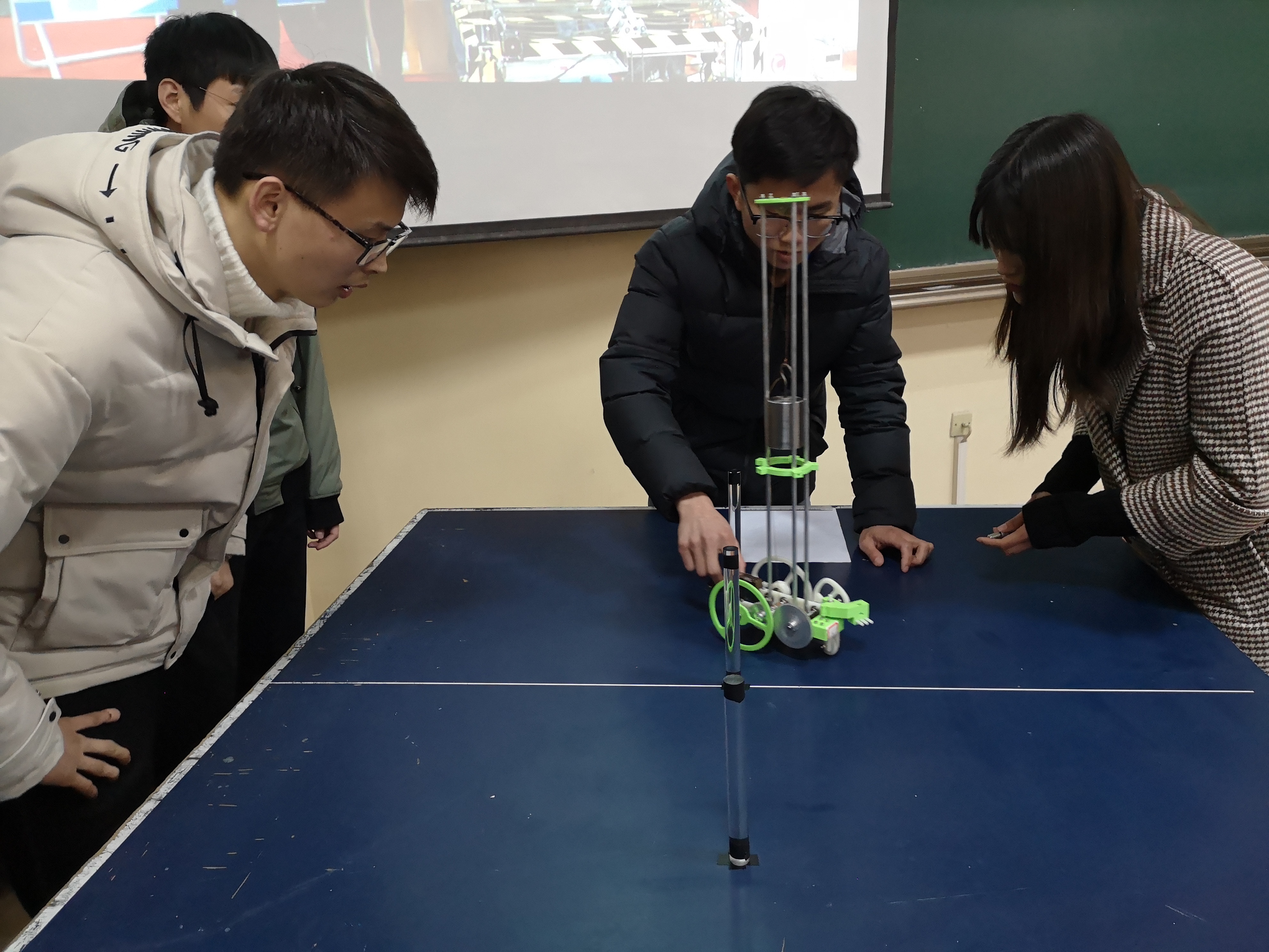 本次大赛命题分设“以重力势能驱动的具有方向控制功能的自行小车竞赛”和“智能机器人物料搬运竞赛”两大类。比赛现场,各组依次进行了PPT汇报、动画与实物演示,专家组对作品的设计、加工、组装、焊接等程序进行了质询,提出了改进意见,并对后续省赛的准备工作进行了深入的探讨。
