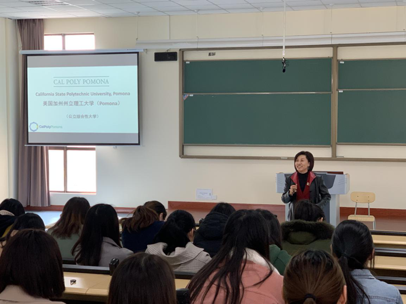 为打造国际人才,推动开放发展,普及出国留学的相关知识,引导同学们制定合理的学业规划,3月15日下午,商学院在西太湖校区X8阶举办了海外升学规划指导讲座,本次讲座邀请美国加州州立理工大学全球教育交流学院主任薛亚萍主讲。