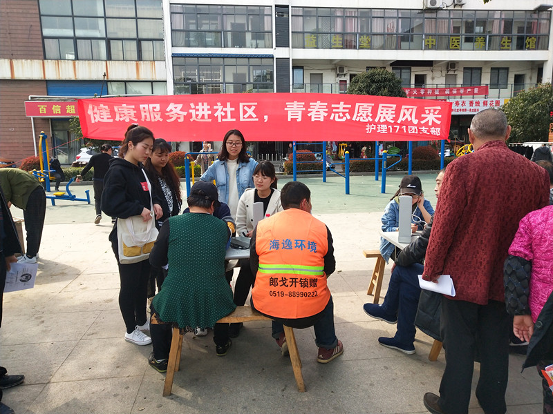3月16日下午,制药与生命科学学院 护理学院的护理171团支部在武进永安社区开展了以“健康服务进社区,青春志愿展风采”为主题的团日活动。