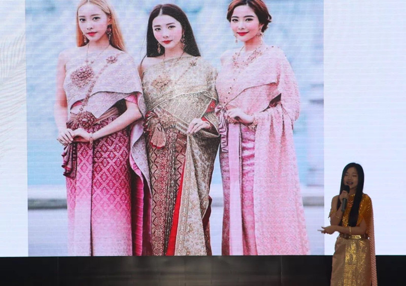 活动开始,主讲人通过演唱传统泰国歌曲活跃气氛拉近同小学生的距离。活动展示了泰国的国旗、气候、寺庙、国服和美食,并以模仿泰语的游戏将活动推向了高潮。