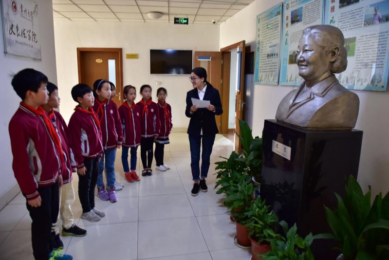 研究生漆乐之以模拟法庭的形式给大家再现了开庭的流程,并介绍了法庭上各位工作人员的职能。活动中,研究生耐心指导小朋友们按照真实法庭的庭审程序进行了模拟演示,使得他们在体验和参与中更深地了解法庭审理程序和相关法律知识,切身感受到法律的神圣威严。研究生刘丽鸿带领小朋友参观了史良先生展示廊,并为他们讲解了史良先生的生平事迹。