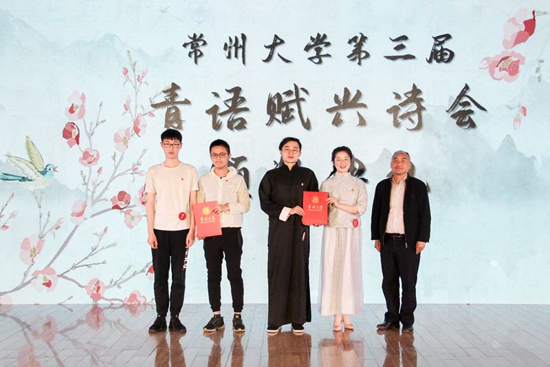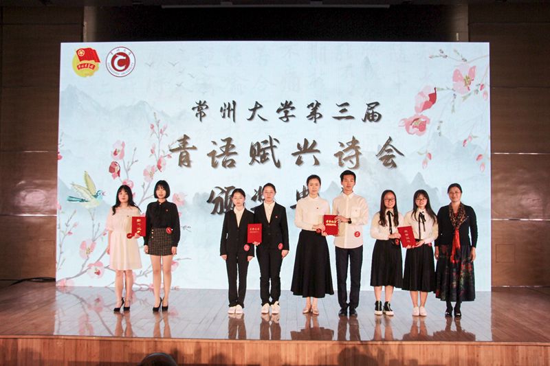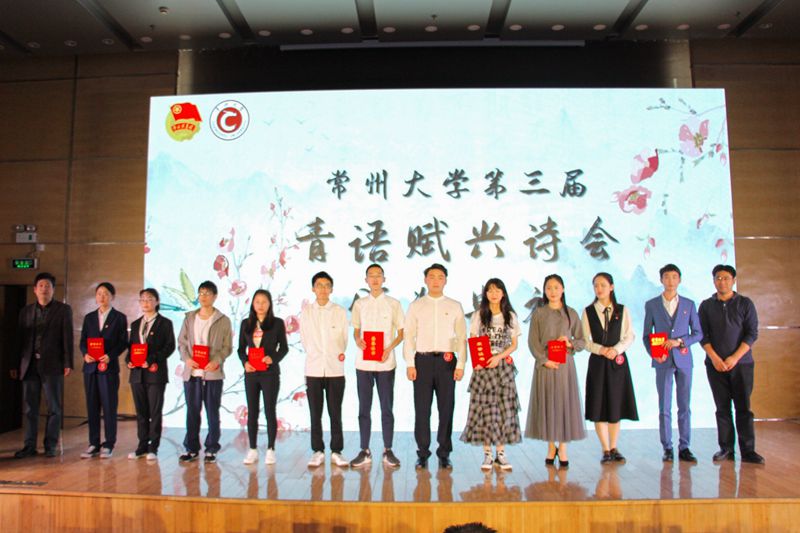 近日,由校团委主办,校学生会承办的常州大学第三届“青语赋兴”诗会在武进校区文彰楼报告厅举行。党办校办主任黄正、校工会主席徐萍、校团委副书记蒋琳、周有光语言文化学院副院长葛金华、周有光语言文化学院中文系主任付用现担任评委。