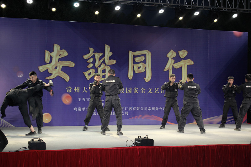 单程票乐队带来的《Come as you are》和《兰州》激情澎湃,拉开了活动的序幕。DS舞社的街舞青春的质感迸发,舞台也随之染上了丰富的色彩。石化学院的《安全演习》为安全知识增加了趣味,在欢笑声中叙述了日常生活中的安全隐患。材料学院的歌曲《飘向北方》道出了当代青年的艰辛与坚持,细腻的情感与高超的演唱技巧引起共鸣。制药学院献上了舞蹈《落花情》,道是“岁月无情人有情”,她们一身柔情感人,追逐着生命与岁月的美好。信息院的小品《微信扫码》以独特的方式警醒人们诈骗的无处不在,提高警惕至关重要。武进公安局团委副书记朱天亮的一首《等待》惊艳全场,巡特警大队队员的擒拿格斗、摔踢滚打、拳腿法展示以及女子防身术的现场教授将晚会推向了高潮。环境院的舞蹈《风筝误》带着满满的烟雨江南气息,一派岁月静好。楼兰剧社的《午夜出租车》在小人物的挣扎中,显现了人间真情,强调了提升安全意识的重要性。最后,晚会在大学生安全协会的安协大合唱《滆湖中路的日子》完美收官。