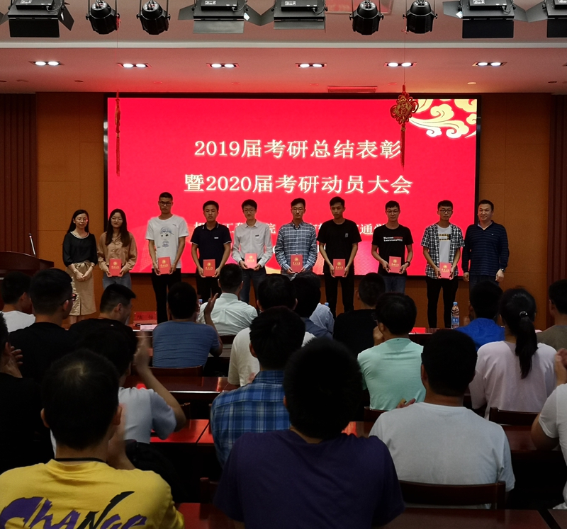 装备152班范何智涵、轨道151班刘晨、机电153班陈博楠以及机制162班张光耀分别代表考取研究生学生和即将准备考研的学生发言。大会为考取博士、硕士研究生的学生颁发了荣誉证书。(通讯员 唐龙)