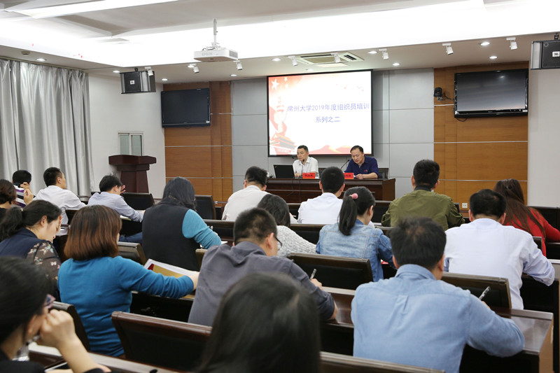 5月15日下午,校党委党校在文正楼第四会议室举行2019年度全校组织员专题培训,分别邀常州市委组织部党管处副处长、远程教育中心副主任杜卫星和马克思主义学院副教授朱世龙作专题培训,全校各二级党组织组织员、机关党工委各支部党务秘书参加本次培训,会议由宣传部副部长储志新主持。