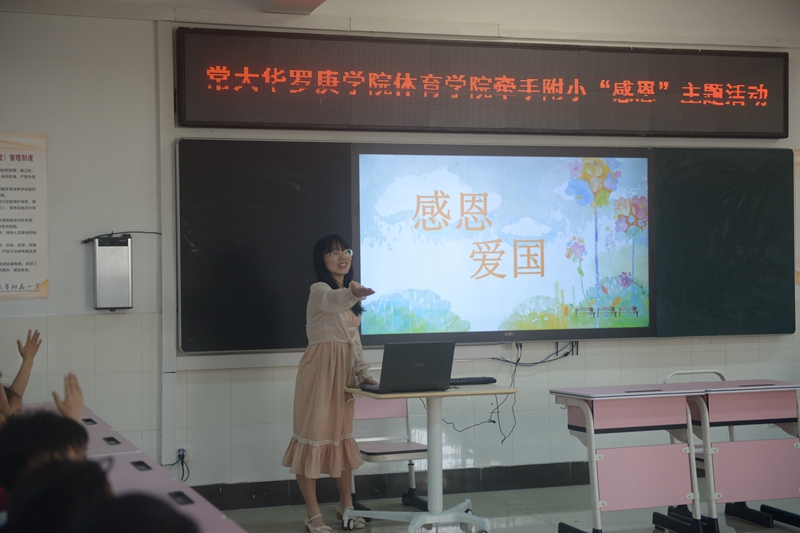 此外,常大学子发挥所长,用浅显生动的语言、有趣的图片带领孩子们探秘了水分子和人工智能,并教授了鞠躬敬礼、跆拳道准备动作、弓步等基本动作,让孩子们了解到跆拳道“以礼始,以礼终”的精神。最后,常大学子与附小学生携手合唱《爱我中华》,让“爱我中华”的情感激荡在学生心灵深处。此次活动不仅使附小学生体悟了知恩感恩、诚信有礼、热爱祖国的美德,也让常大学子在精勤不倦、立志事业的同时,肩负起做好时代榜样的责任。(通讯员 席帅)