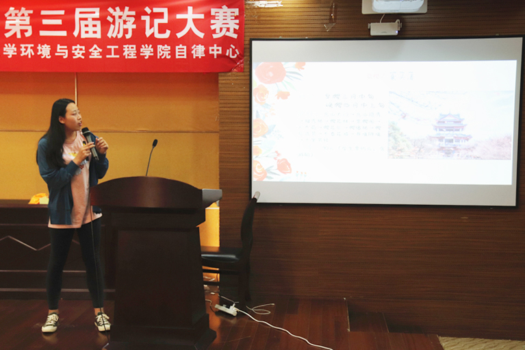 本届游记大赛的作品征集从四月初开始,先后共收到了来自全校各院系组织的48组作品,经过了初赛、复赛等各环节的选拔,共有9支队伍参加了本轮决赛。决赛评选主要分为视频展示和幻灯片讲解两个部分。游记的视频生动而直观地展现了选手们在游历过程之中的所见所闻,或是令人垂涎的特色美食,或是诗情画意的小桥流水,或是历经了千年风雨相守着时光的悠韵古城,无不勾起了我们对这个世界的深深向往。而选手们通过对幻灯片的讲解,将旅途的欢愉和感悟带进了赛场,感染着在座的每一位嘉宾。最终,游记作品《云端之南》荣获一等奖;《刚好遇见你》和《樱花旅》荣获二等奖;《清明游记》《Only》《春日明园》荣获三等奖。(通讯员 周婷婷)