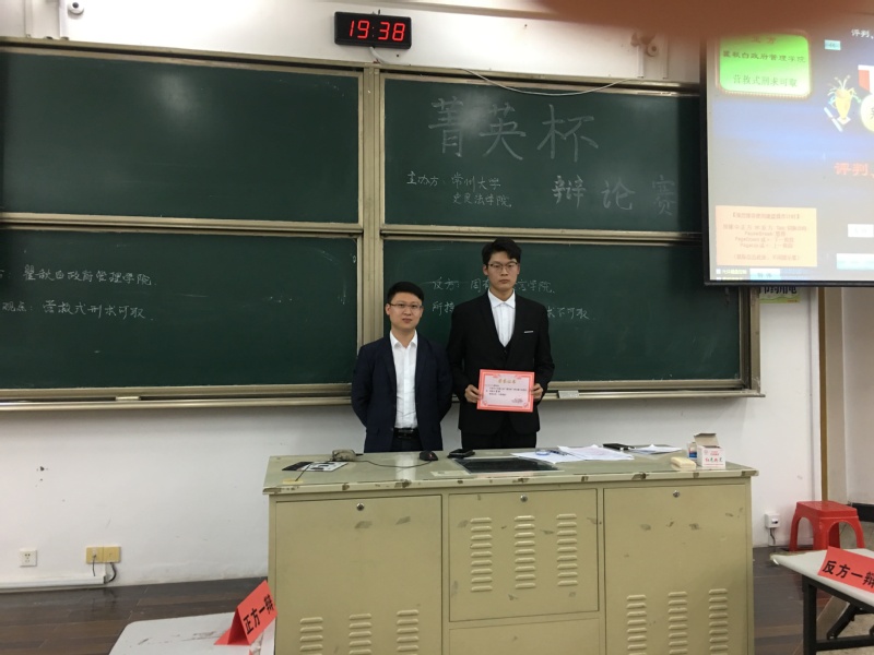 5月19日下午,由校团委主办、史良法学院承办的常州大学第七届“菁英杯”辩论赛决赛在常州大学武进校区举行。史良法学院资深刑法教授骆福林老师,常州市第四届检察官与律师辩论赛优秀辩手、史良法学院校外实务导师张骏律师,第二届龙图杯全国高校法庭辩论赛季军、常州大学辩论队前队长巫天成同学担任本届“菁英杯”辩论赛决赛的评委。